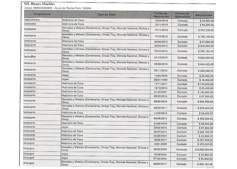 En una revisión de las declaraciones patrimoniales del político, se observa que, en febrero de 2019, entre su mujer y él, López Hernández declara poseer diez millones de pesos en diversos bienes muebles. Estos incluyen mobiliario de casa por valor de dos millones, casi ocho millones en monedas y metales (“Centenarios, Onzas Troy, Moneda Nacional, Divisas y Otros”), y el restante en joyas. Además, dice tener tres vehículos— dos camionetas; Chevrolet Suburban y Toyota Highlander y un Volkswagen Jetta— que suman 1.4 millones de pesos y 12 propiedades. De estas, siete, con un valor de 20 millones de pesos, están a su nombre o el de su mujer, Dea Isabel Estrada, mientras otras cinco (2.4 millones en total) son propiedad de “dependientes” de López Hernández. En total, con él como declarante, López Hernández suma 21.7 millones de pesos en propiedades.