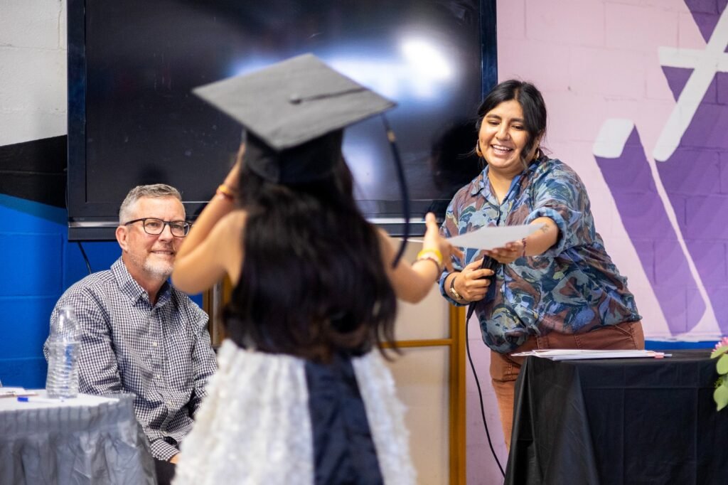 “En este reconocimiento que se ve tan simple, está representado todo su esfuerzo por muchos años, todas esas veces que se levantaron temprano, que llegaron mojados por la lluvia, que no había dinero para pagar el taxi, que sus padres no los pudieron acompañar, todo eso representa este papelito, hoy es la primaria, mañana la secundaria, después la preparatoria, y ¿por qué no la universidad?”, expresó la alcaldesa Montserrat Caballero ante un grupo de aproximadamente 45 menores que hoy concluyeron el ciclo escolar 2022- 2023 gracias al programa educativo de la organización Zona Red, quien brinda atención a personas en condición de calle que deambulan por la Zona Norte, en la Delegación Centro.