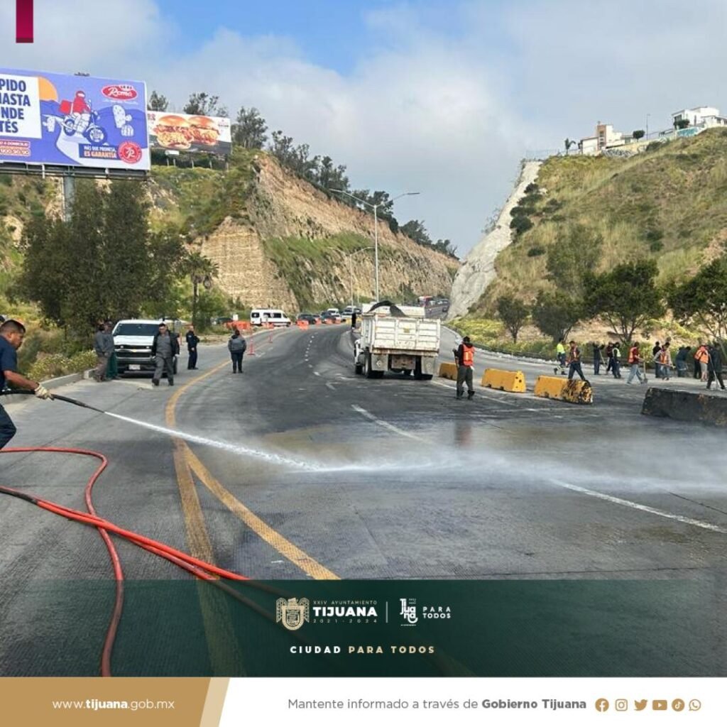 La alcaldesa de Tijuana Montserrat Caballero Ramírez, instruyó al titular de la Secretaría de Desarrollo Territorial, Urbano y Ambiental (SDTUA), Enrique Bautista Corona, para que personal del área limpiara de manera inmediata el derrame de residuos de lodo provocado por un camión de la Comisión Estatal de Servicios Públicos (CESPT).