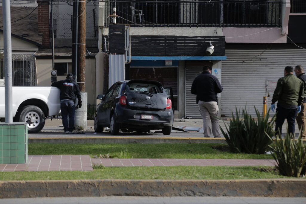 Aproximadamente a las 6:00 horas de este día, policías y paramédicos se trasladaron al lugar en mención, y al arribo tuvieron a la vista un Nissan March oscuro con placas del estado de Baja California, mismo que estaba impactado tanto en la parte frontal como trasera.