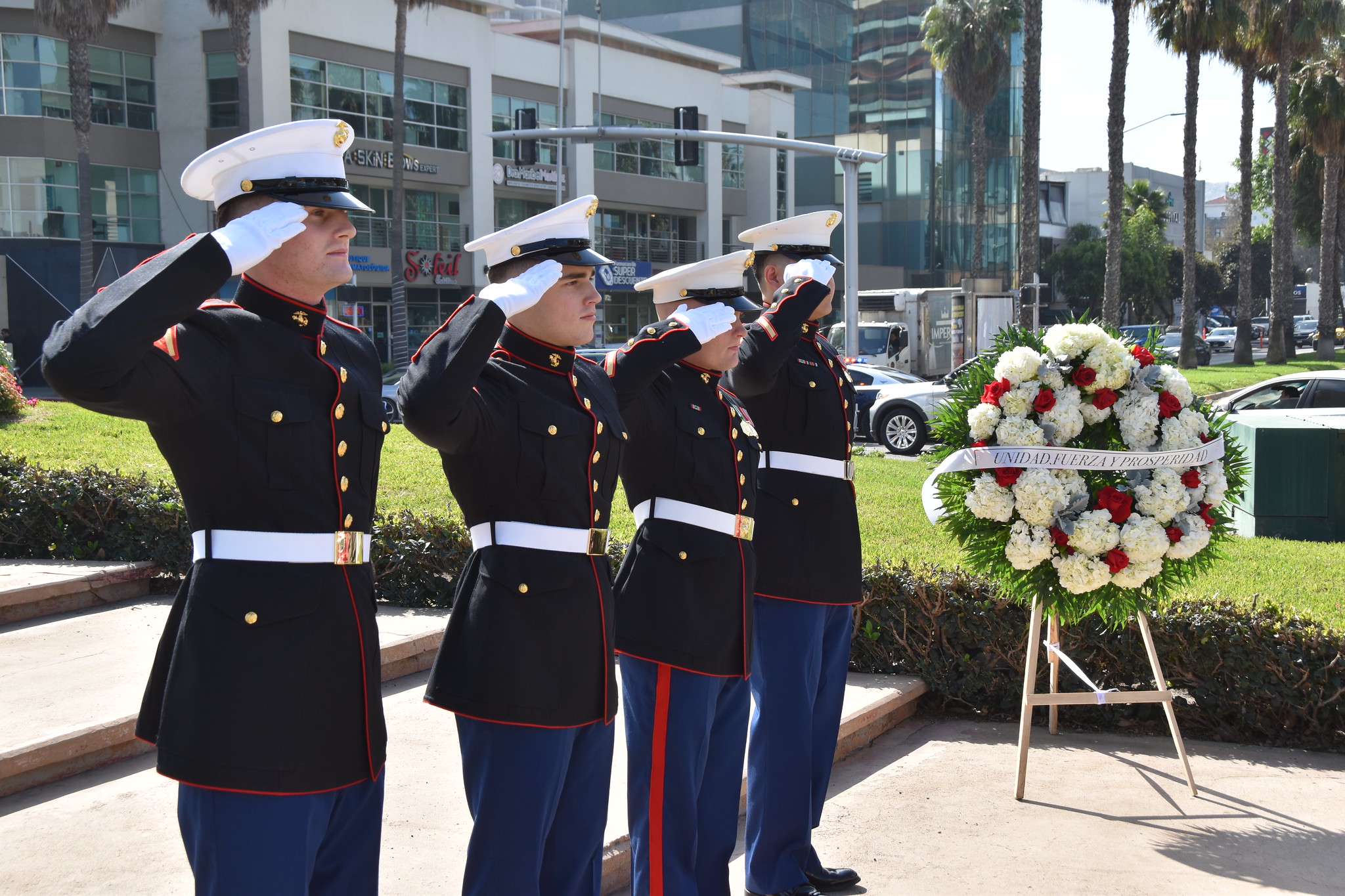 El acto fue encabezado por el cónsul general, Christopher Teal, quien estuvo acompañado por integrantes del Cuerpo de Infantería de Marina de Estados Unidos.