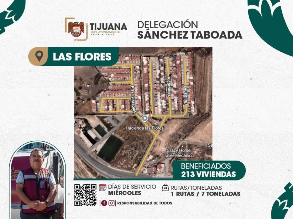 En seguimiento a las acciones para mejorar el servicio de recolección de basura en la ciudad, el gobierno del presidente municipal, Ismael Burgueño Ruiz, continúa informando sobre la ampliación de cobertura en la Delegación Sánchez Taboada, donde se pusieron en marcha 43 nuevas rutas de recolección.