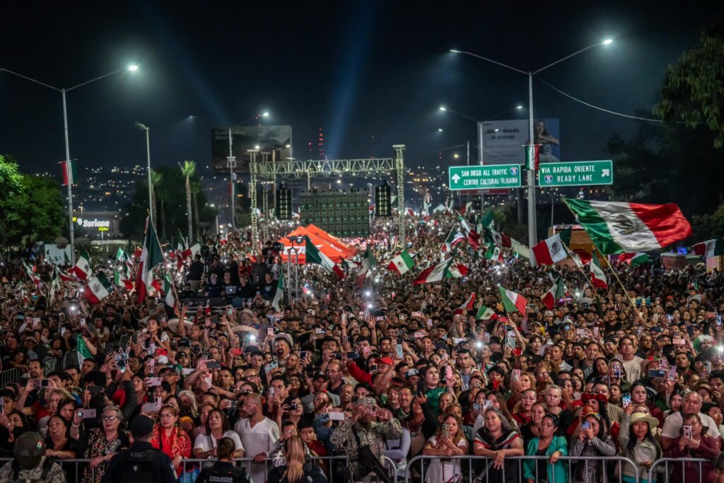 “Tijuanenses, Viva la Independencia de México, Viva Miguel Hidalgo y Costilla, Viva Josefa Ortiz de Domínguez, Viva Ignacio Allende, Viva Leona Vicario, Viva José María Morelos y Pavón, Viva Vicente Guerrero, Vivan las heroínas y héroes anónimos, Viva la libertad que nos une, Viva la igualdad que nos fortalece, Viva la democracia, Viva la soberanía, Vivan nuestros hermanos migrantes, vivan los mexicanos corazón de la nación, Viva la transformación que nos impulsa hacia el futuro, viva nuestra frontera puente de encuentro, Viva Tijuana, Viva México”, exclamó Burgueño Ruiz.