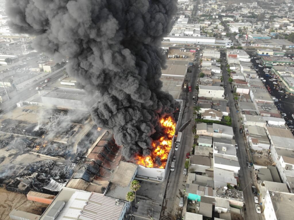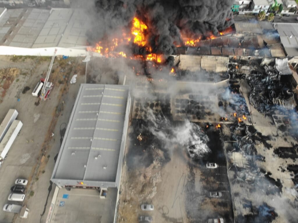 Por instrucciones de la alcaldesa Montserrat Caballero Ramírez y con el objetivo de salvaguardar la vida de las y los tijuanenses, los cuerpos de emergencia del Ayuntamiento de Tijuana se concentran en la atención del incendio en una fábrica de poliuretano de la delegación La Mesa, mismo que ya fue contenido.