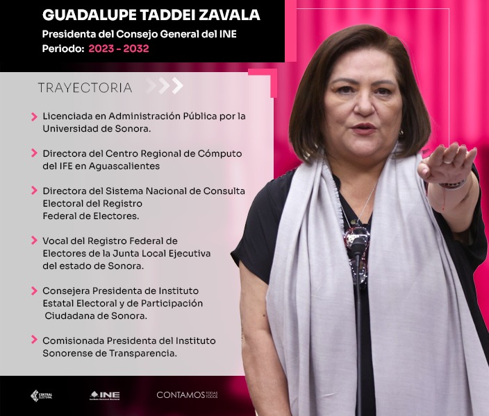 Guadalupe Taddei Zavala se rindió protesta a sí misma este lunes 3 de abril como consejera presidenta del Instituto Nacional Electoral (INE).