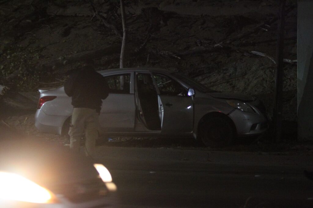 Al llegar en conjunto con paramédicos de Cruz Roja, se creía que el hombre estaba lesionado por colisión y salida de camino de su Nissan Versa 2014 y con placas de BC , sin embargo, al revisarlo detectaron que tenía heridas producidas con arma de fuego.