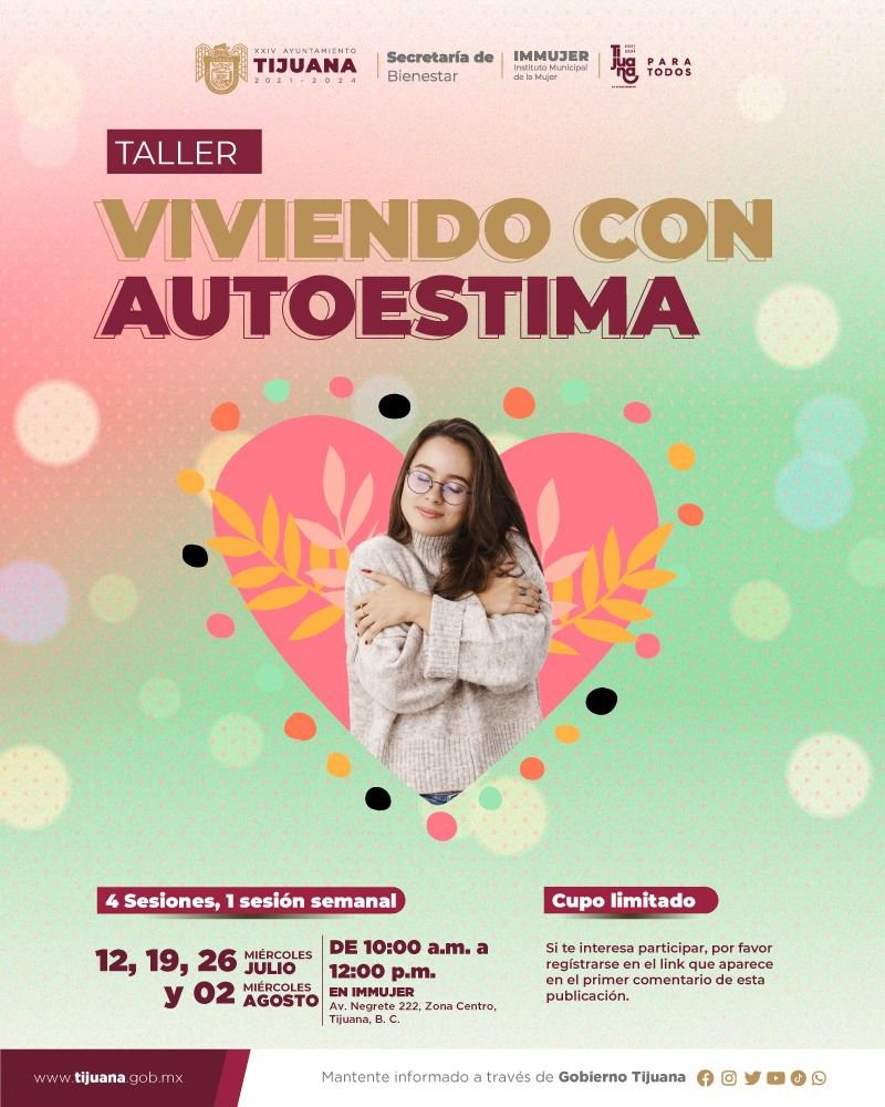 Con la finalidad de prevenir la violencia de género y fomentar el desarrollo personal de las mujeres, el XXIV Ayuntamiento que encabeza la alcaldesa Montserrat Caballero, a través del Instituto Municipal de la Mujer (IMMUJER), las invita a formar parte del taller “Viviendo con Autoestima”.
