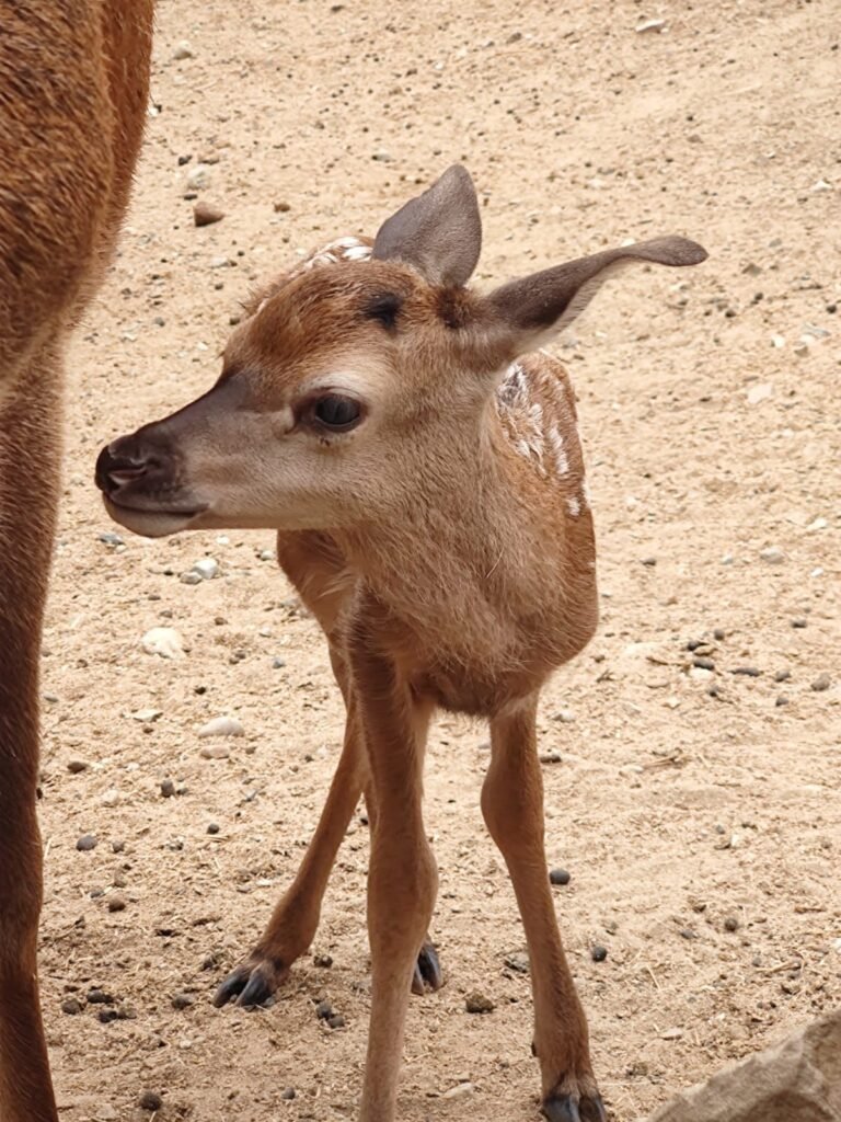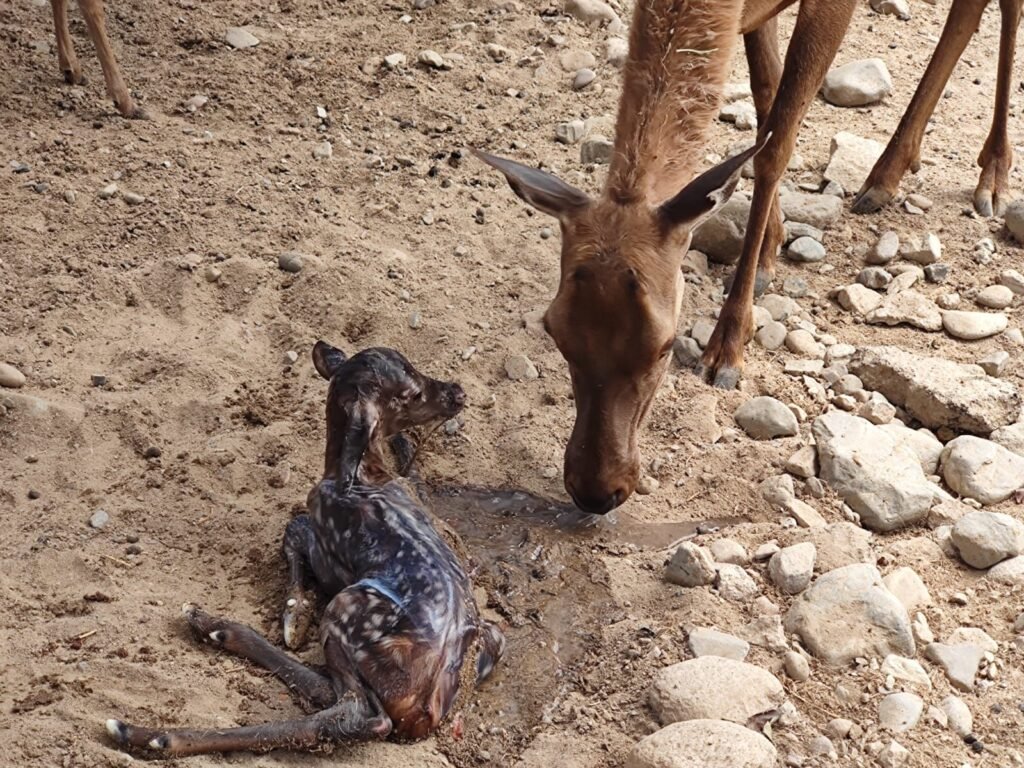La cría de venado, también conocido como ciervo rojo, nació durante los primeros días del mes de junio, periodo que corresponde a la temporada habitual de nacimiento de esta especie, esto posterior a su proceso de gestación que dio inicio la segunda mitad de septiembre, y que dura habitualmente de 235 a 240 días.