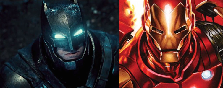 Cada una de las dos grandes empresas editoras de cómics, Marvel y DC, cuentan con un personaje similar en un aspecto sustancial: es un multimillonario que dispone de conocimientos y, sobre todo, de medios materiales para desarrollar una tecnología de mejoramiento personal que transforma al ser humano en un superhéroe. Tony Stark, alias Iron Man, y Bruce Wayne, Batman, no solo emplean esas técnicas en su propio beneficio, sino que las comparten con quienes estiman conveniente para dotarlos de habilidades impensables, u optimizar las ya existentes, formando o potenciando sus propios equipos.