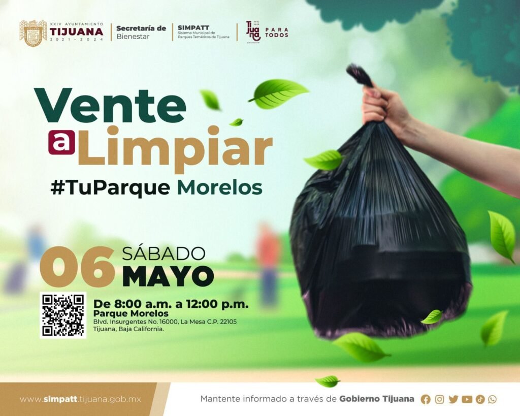 El XXIV Ayuntamiento de Tijuana, encabezado por la alcaldesa Montserrat Caballero Ramírez, a través del Sistema Municipal de Parques Temáticos (SIMPATT) llevará a cabo la actividad denominada “Vente a limpiar #TuParque” que se realizará en el Parque Morelos.