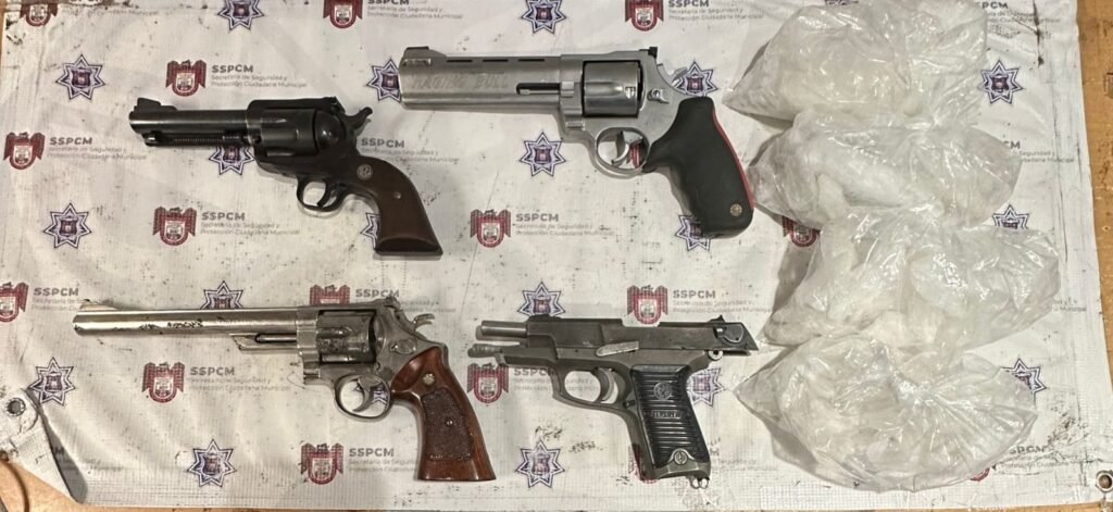 Diversas armas de fuego y droga fueron aseguradas en un trabajo coordinado entre la Policía Municipal, la Secretaría de la Defensa Nacional (SEDENA) y elementos de la Guardia Nacional en el fraccionamiento Valle de las Palmas, donde autoridades resguardaron un domicilio.