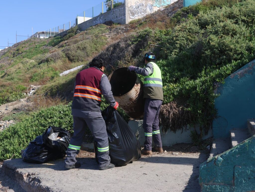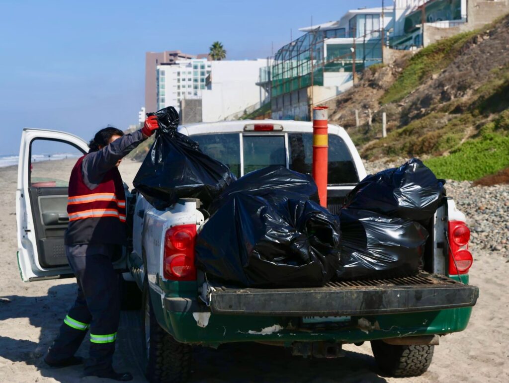 Posteriormente, en la playa El Vigía, colonia Playas de Tijuana, Sección Costa Hermosa, se retiró una tonelada de basura y se limpiaron mil 500 metros cuadrados de la playa, beneficiando a más de mil personas que disfrutan de este espacio público.