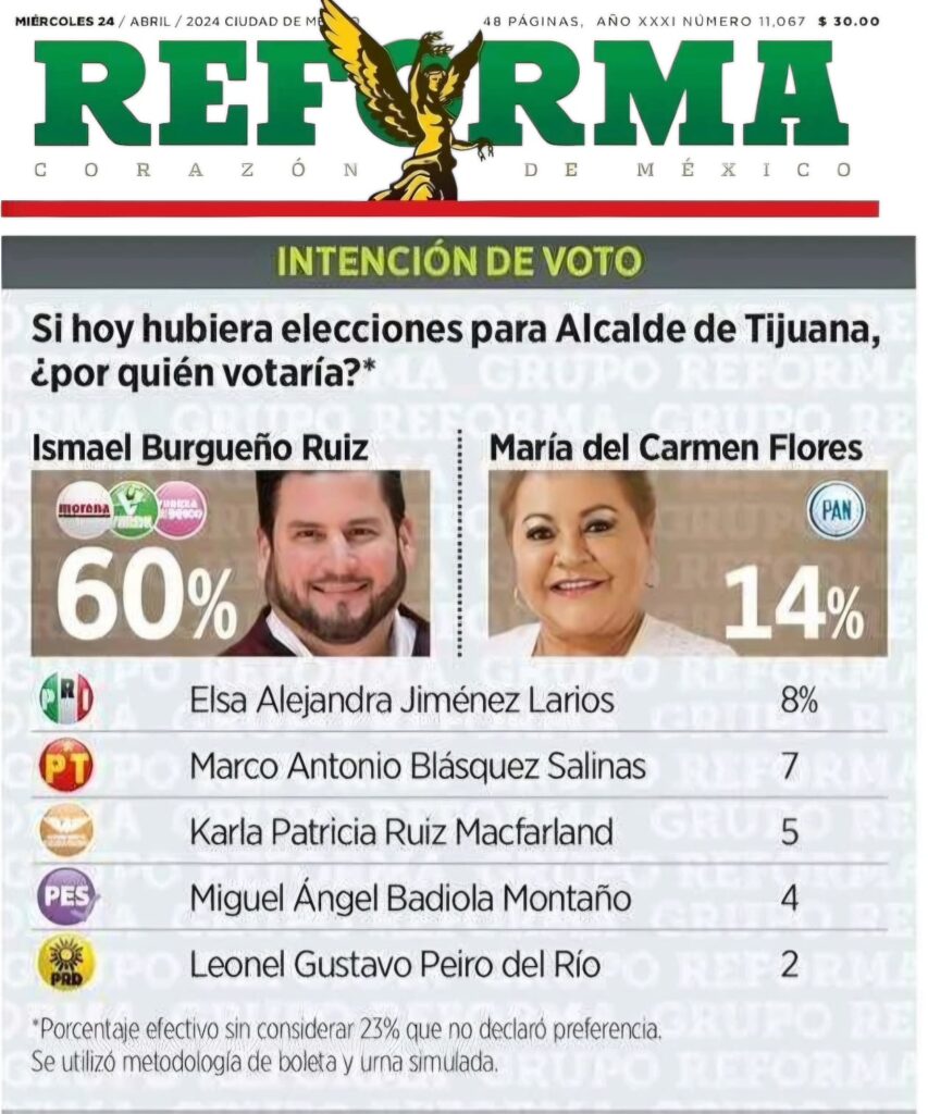 Lo anterior de acuerdo a un sondeo realizado por el Grupo Reforma del 17 al 22 de abril a un total de 500 ciudadanos adultos con credencial de elector.