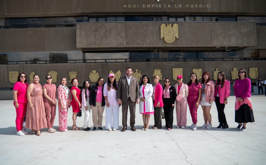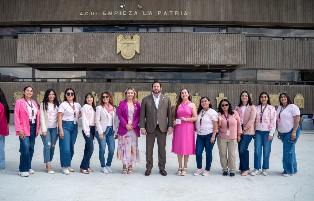 La creación del moño rosa se llevó a cabo en la explanada exterior del Palacio Municipal, en una actividad coordinada por la Secretaría de las Mujeres, con la participación de la Síndica Procuradora, Teresita Balderas Beltrán; la regidora Magaly Ronquillo Palacios; la secretaria de las Mujeres, Katherine Collins Barrera; funcionarias del gabinete, delegadas, directoras, coordinadoras y personal del Ayuntamiento que se sumaron activamente a esta acción de concientización.