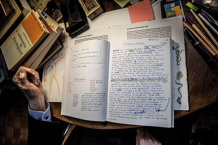 Yo sostengo que hay redes exocerebrales conformadas por prótesis simbólicas que prolongan, en las esferas sociales y culturales, funciones cerebrales. Lo he explicado en mi libro Antropología del cerebro. Estas prótesis son estructuras simbólicas como el lenguaje, la música, el arte y las memorias artificiales. Y estas prótesis culturales cada vez están más invadidas por algoritmos, como los que modulan las complejas máquinas que nos rodean, empezando por los teléfonos móviles. Este exocerebro es lo que permite que seamos conscientes de que somos conscientes.