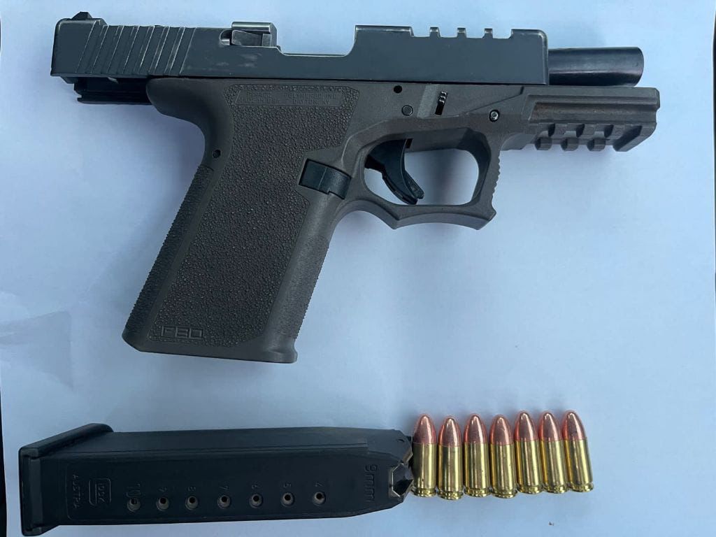 Al detener la mini van color blanca y con placas de California, realizaron inspección a los tripulantes, quienes se identificaron como Juan de 46 años y originario del Estado de México, junto a Yael de 34 años de edad y originario de Nayarit, quienes portaban en la camioneta una pistola calibre 9 milímetros con 7 cartuchos útiles.