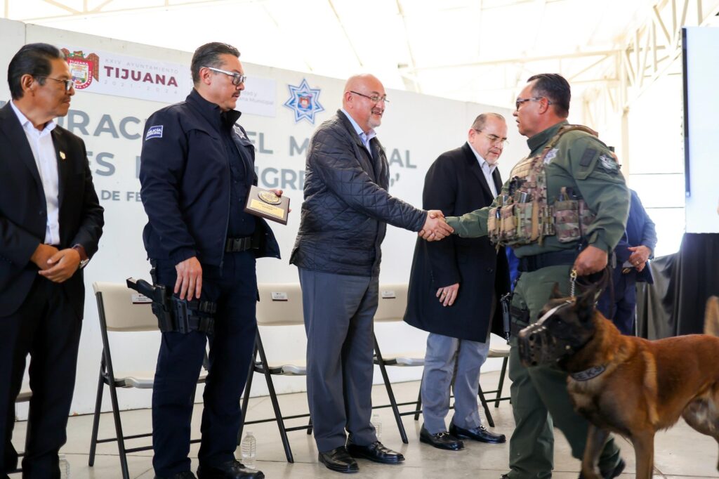 Durante la ceremonia, también se reconoció con la medalla “Al Mérito Ejemplar”, la trayectoria de Nacho, Apollo, Rambo, Sophia, Tommy y Dantino, agentes caninos a quienes se les retiró del servicio activo y pusieron en alto el nombre de Tijuana en múltiples competencias internacionales.