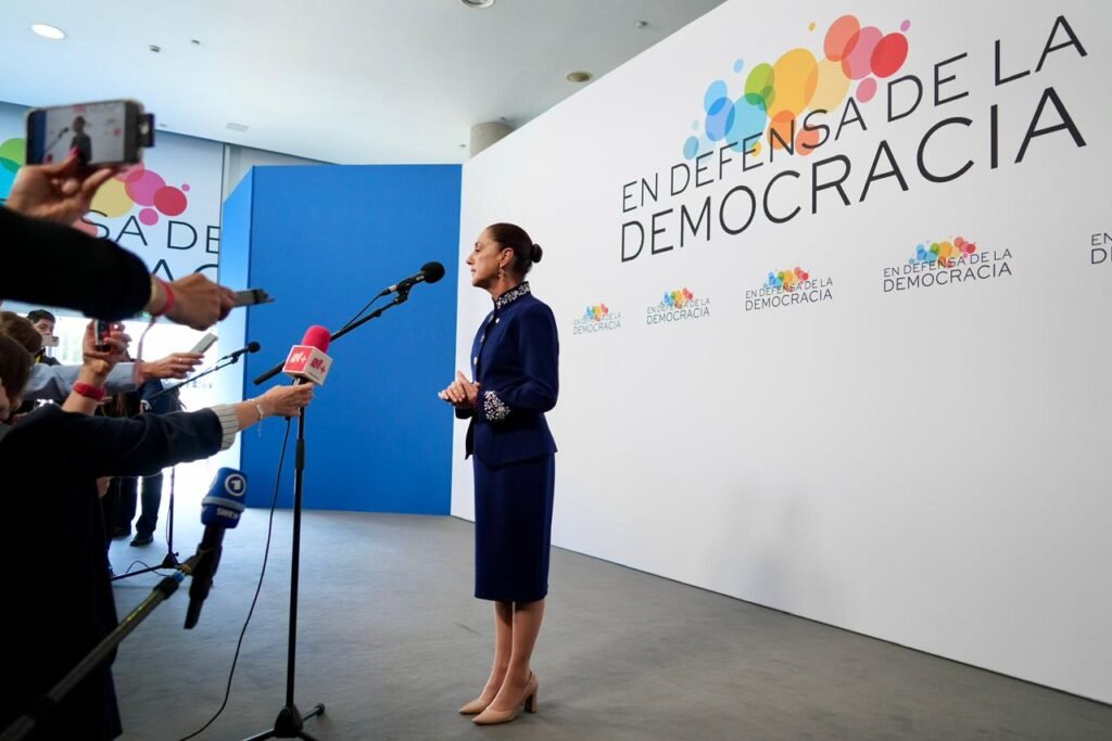 La mandataria mexicana destaca por su participación en la IV Cumbre en Defensa de la Democracia: propone destinar 10% del gasto militar a reforestación