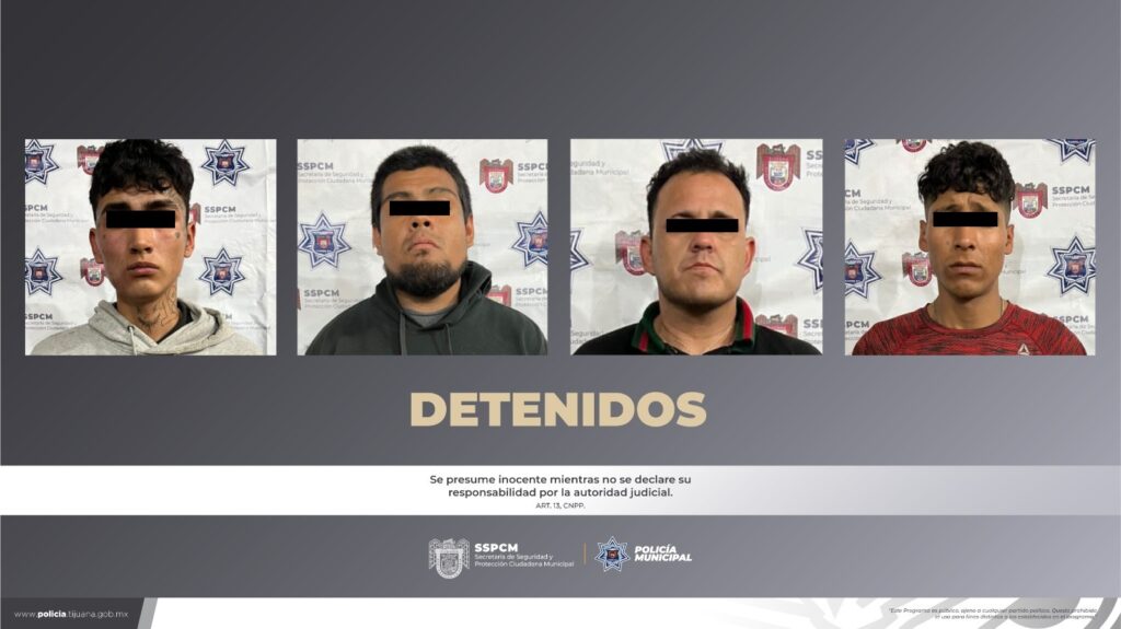 Los sujetos se identificaron como Jesús “N” de 33 años originario de Sinaloa, Emmanuel “N” de 20, Rigoberto “N” de 24 y Brandon “N” de 23, los tres nacidos en Tijuana.