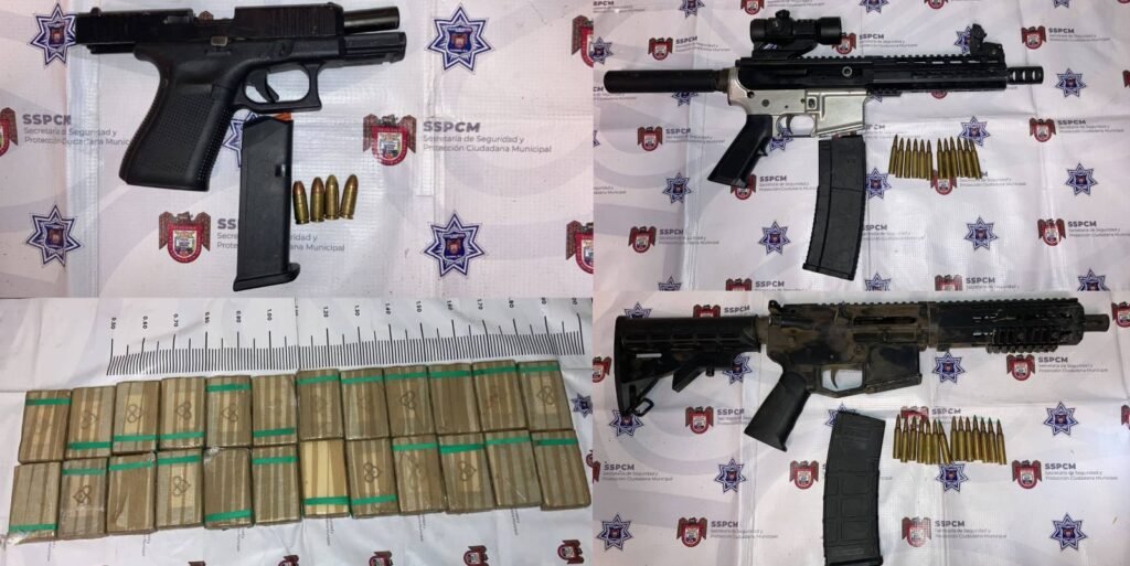 Los hombres fueron identificados como Andrés “N” alias “El Negro Jaquez” de 41 años y Danny “N” de 44, a quienes les fueron aseguradas dos armas largas calibre .223 abastecidas con 12 y 15 cartuchos útiles y un arma tipo pistola calibre 9 milímetros abastecida con cuatro cartuchos útiles, de igual manera y al inspeccionar el vehículo fueron localizados 24 paquetes de forma rectangular que contenían en su interior un polvo blanco de lo que parecía ser cocaína, dando un total de 27 kilos, quedando en espera de la confirmación una vez que los peritos de la FGR realicen las pruebas químicas confirmatorias.