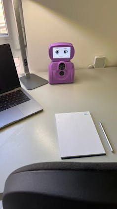 Imagen del robot Atent@ preparado para un sesión de trabajo con personas con TDAH. / Jonnathan Santiago Berrezueta Guzman. Author provided